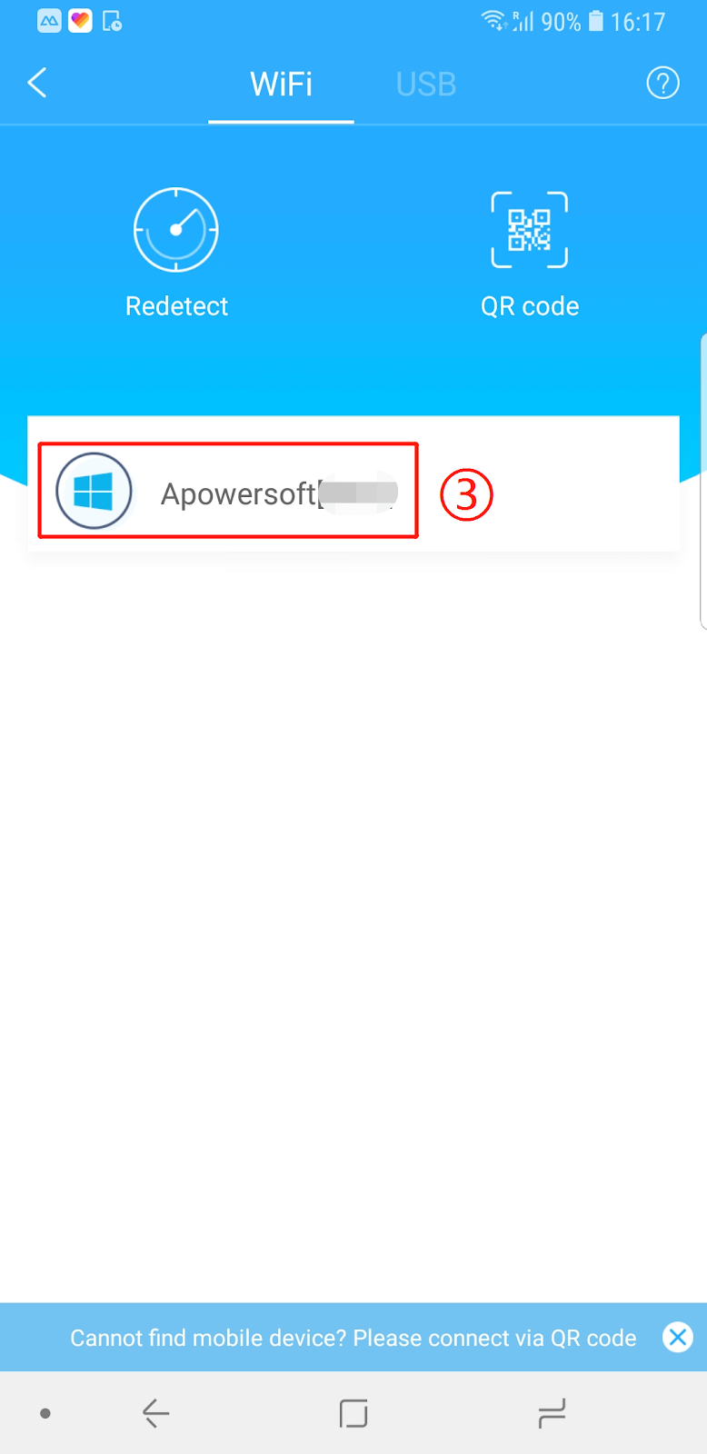 1.3 Open ApowerMirror and click ‘Mirror’ at the bottom (make sure your laptop and mobile are under same Wi-Fi condition), ApowerMirror will start searching for PC devices that are on the same Wi-Fi network and have ApowerMirror installed.