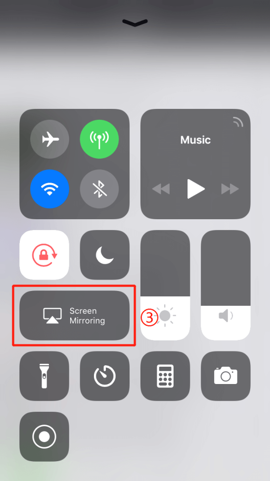 1.3 Swipe up from the bottom of any page, click airplay, and then select your computer, and open the mirror switch (Noted: phone and computer need in the same wifi network)